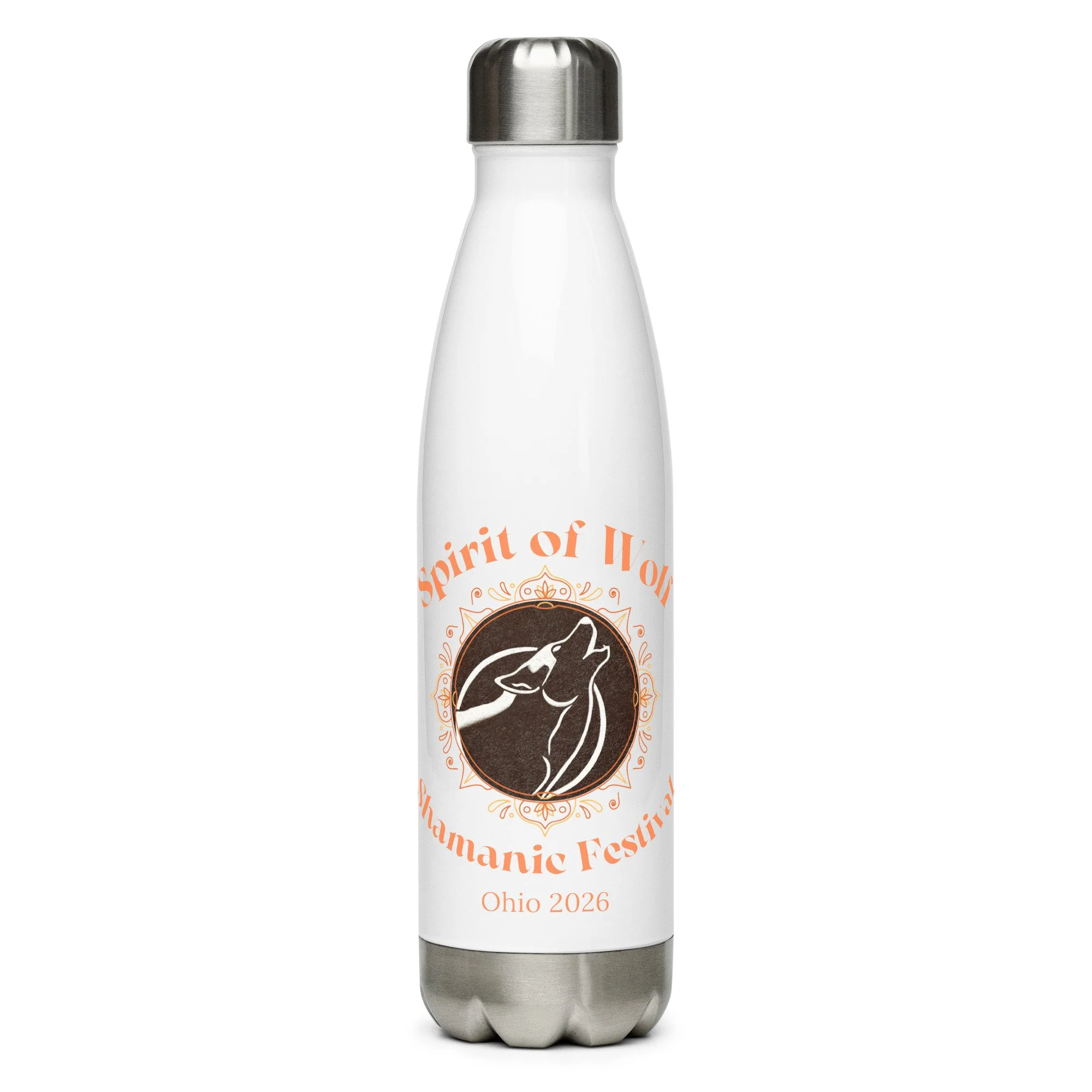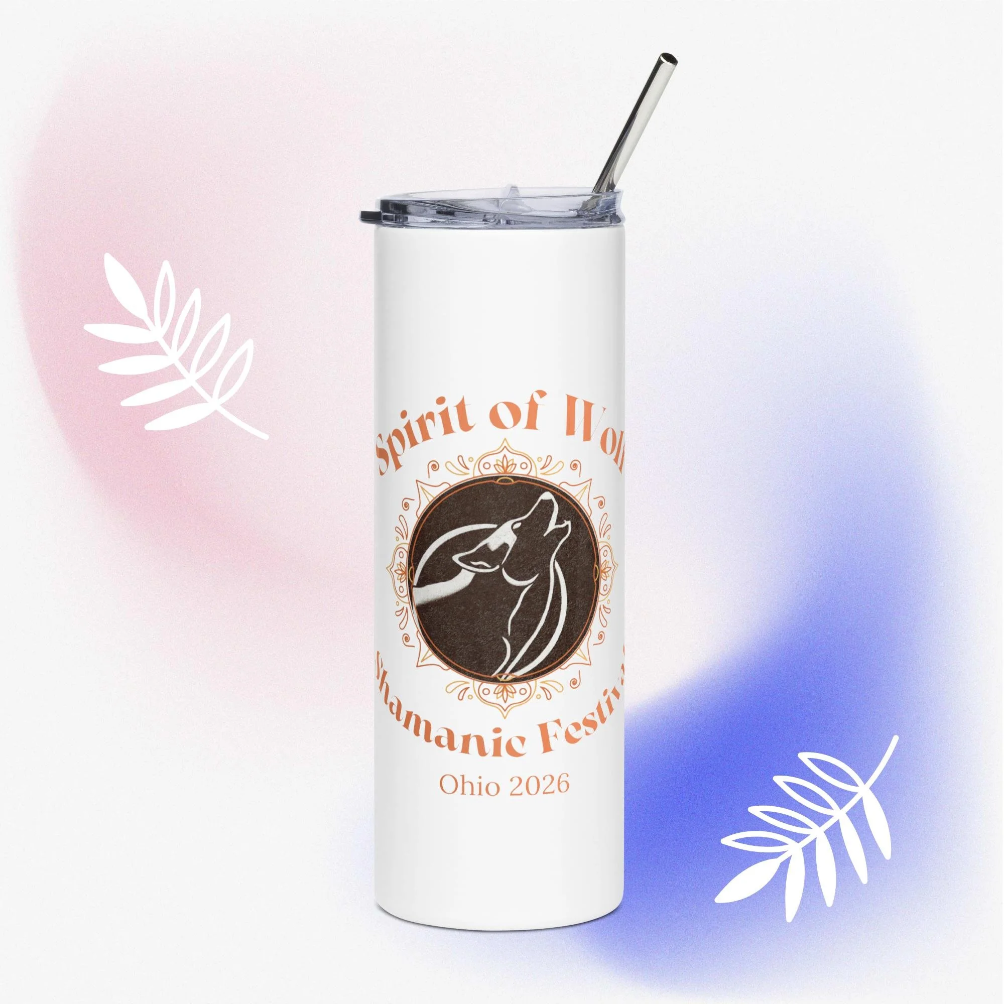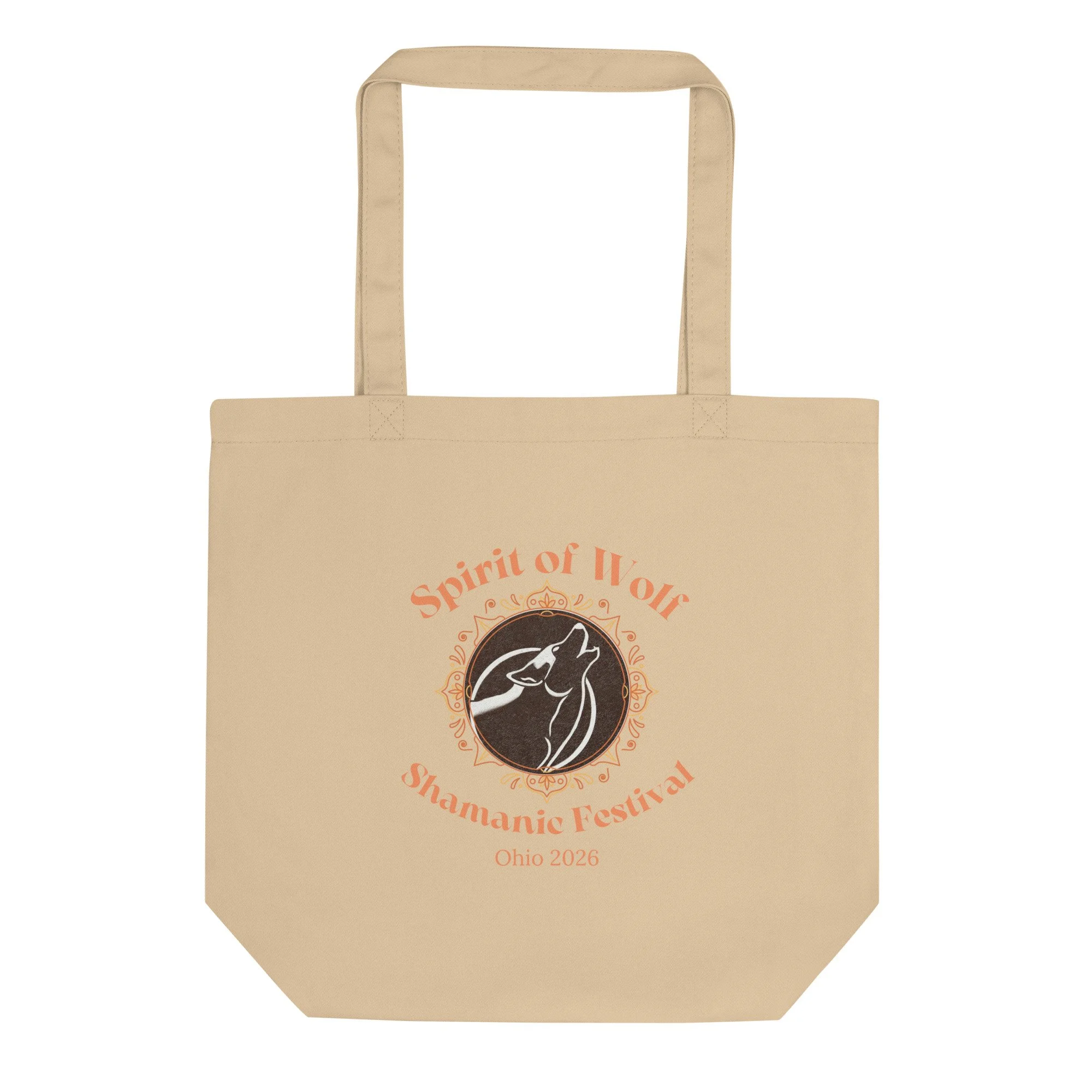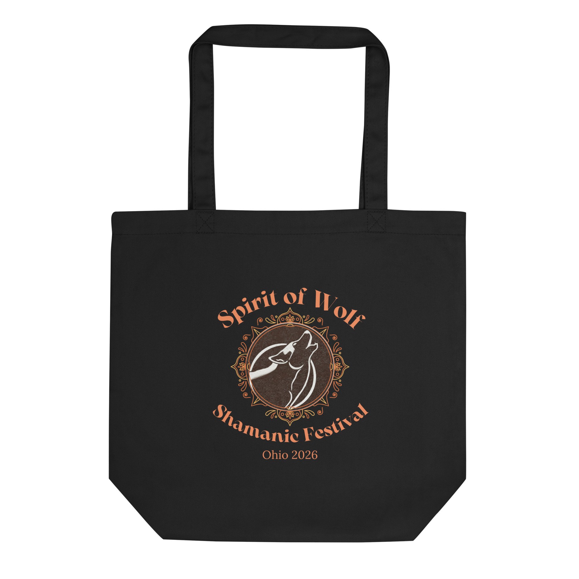 Purple T-shirt with a logo featuring a howling wolf inside a circle, surrounded by decorative patterns. Text reads 'Spirit of Wolf Shamantic Festival Ohio 2026'.